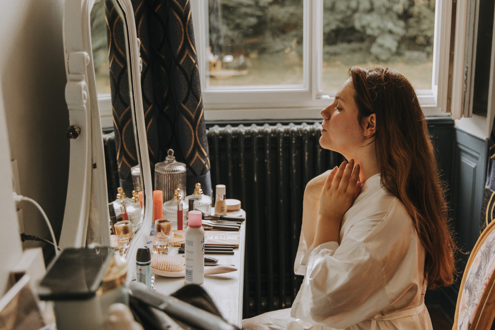 Les préparatifs sont souvent perçus comme une simple étape avant “le vrai moment”. Et pourtant, pour moi, ils font déjà partie intégrante de votre mariage. Je vois souvent des mariés pressés par l’horaire, qui enchaînent maquillage, habillage, photos, sans vraiment respirer. Ce que beaucoup me confient après coup, c’est ce regret de ne pas avoir pris le temps de se poser ou encore de ne pas avoir profité pleinement de la présence des proches. Ces instants sont chargés d’émotion, ils méritent d’être vécus, pas seulement traversés.